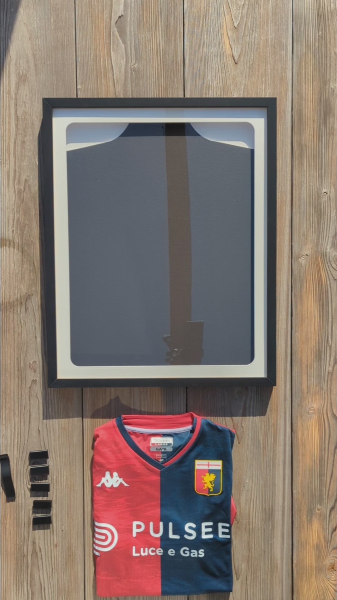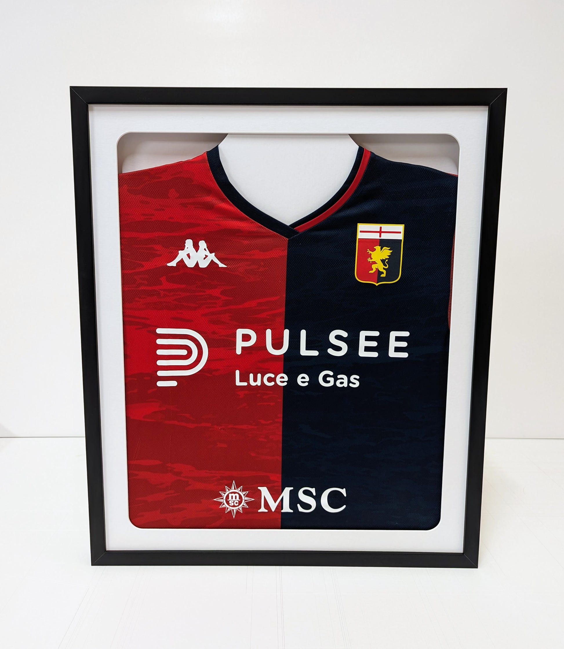 Eleva il tuo orgoglio sportivo con la nostra esclusiva cornice per maglie da calcio. Progettata con cura per mettere in risalto ogni dettaglio della tua maglia preferita, questa cornice offre un'elegante esposizione che celebra la tua passione per il calcio. Realizzata con materiali premium, la cornice garantisce una presentazione impeccabile. La sagoma interna e le clip di fissaggio assicurano una tensione perfetta, conservando la maglia nel suo stato originale.